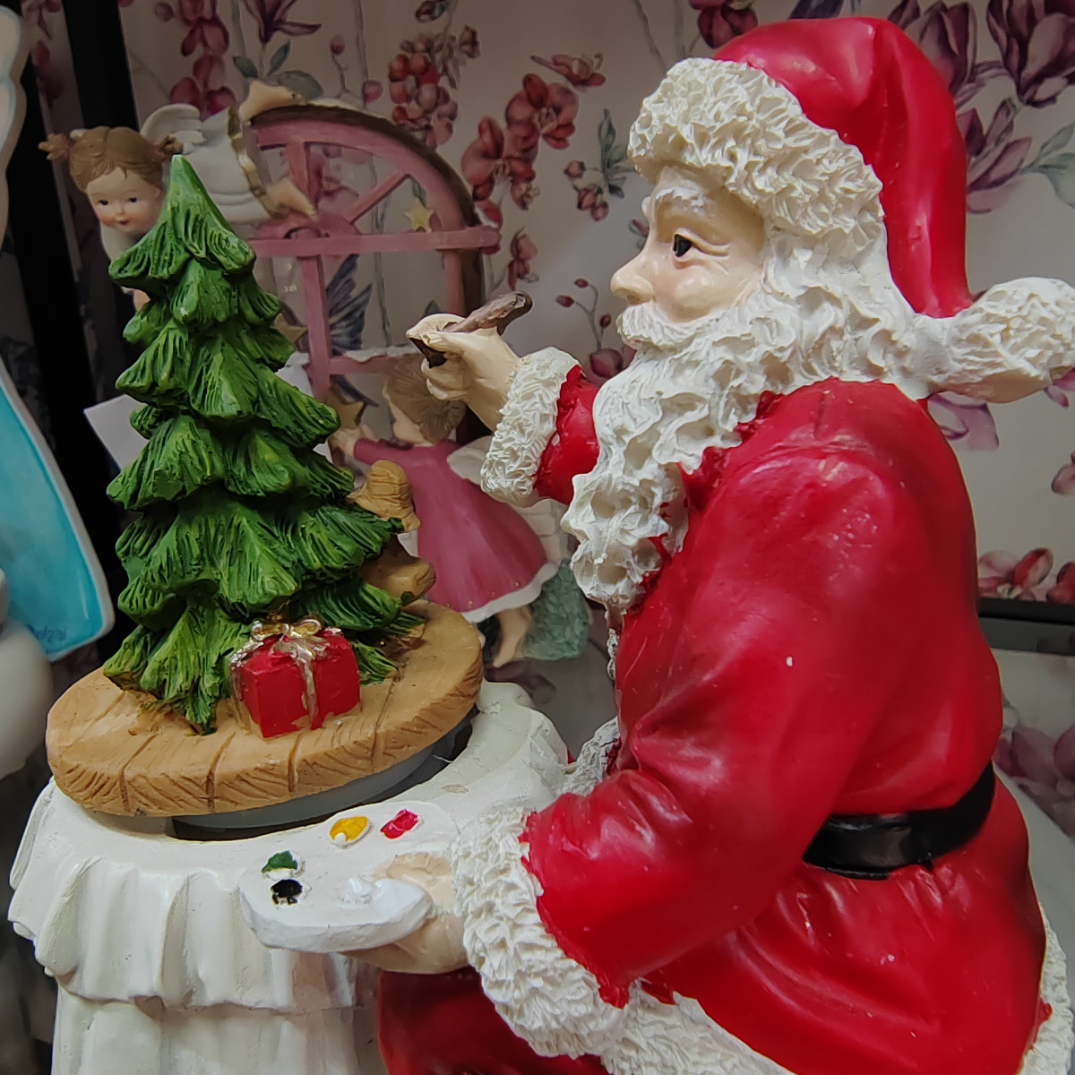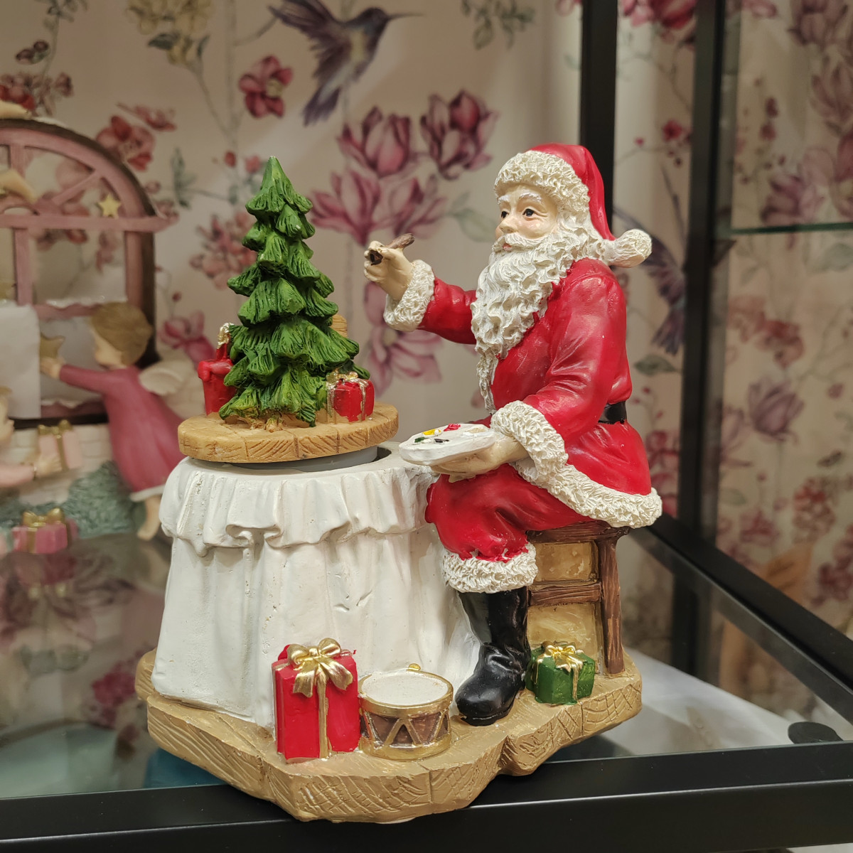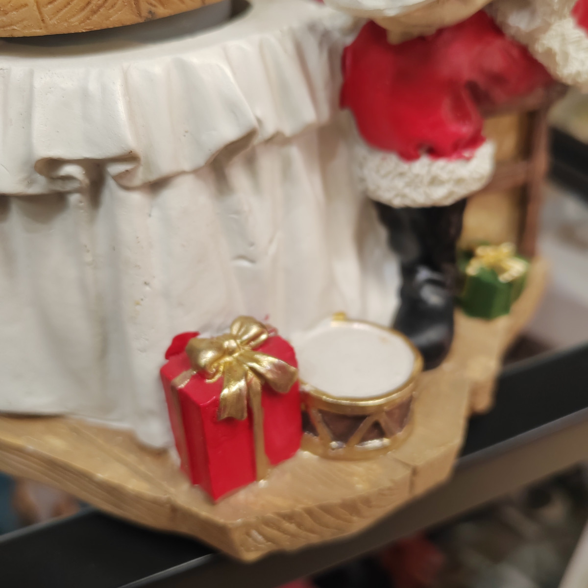 Splendido carillon in resina dipinto a mano con scenetta natalizia di babbo natale che fabbrica giocattoli.