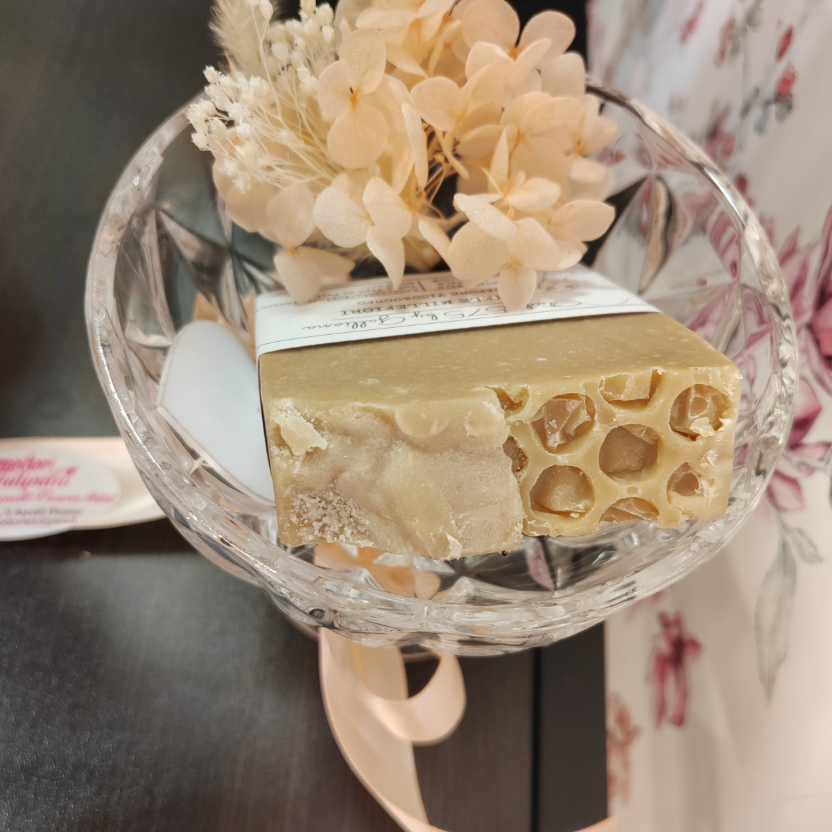 Composizione fatta a mano con saponetta 100% artigianale e naturale per tutti i tipi di pelle, anallergica.