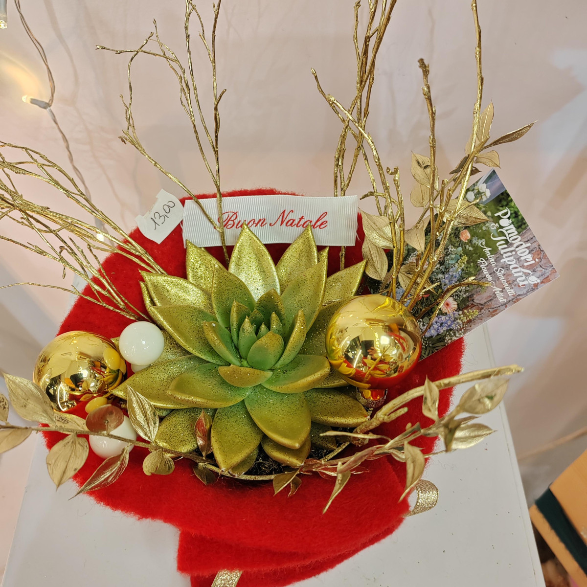 Piantina Echeveria in avvolgente tessuto in lana con decorazioni natalizie