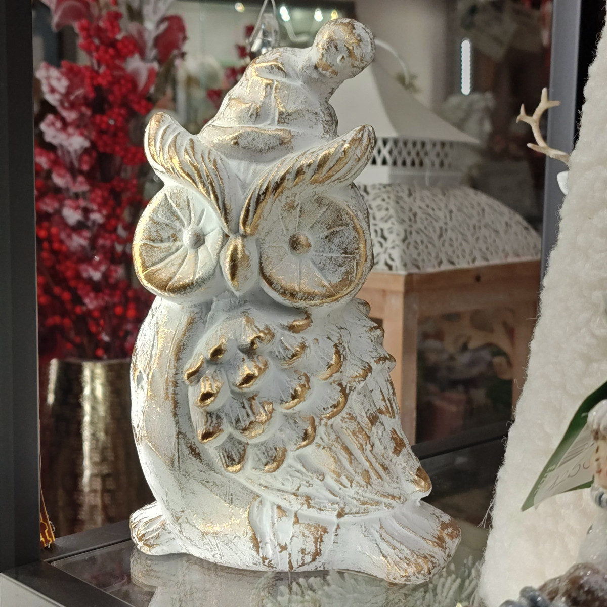 GUFO RESINA D13X9,7 H20CM. BIANCO e ORO