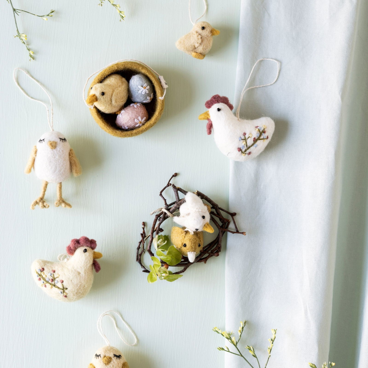 Pulcino con particolari occhi ricamati a mano che danno un aspetto sognante, è ideale come decorazione primaverile o pasquale