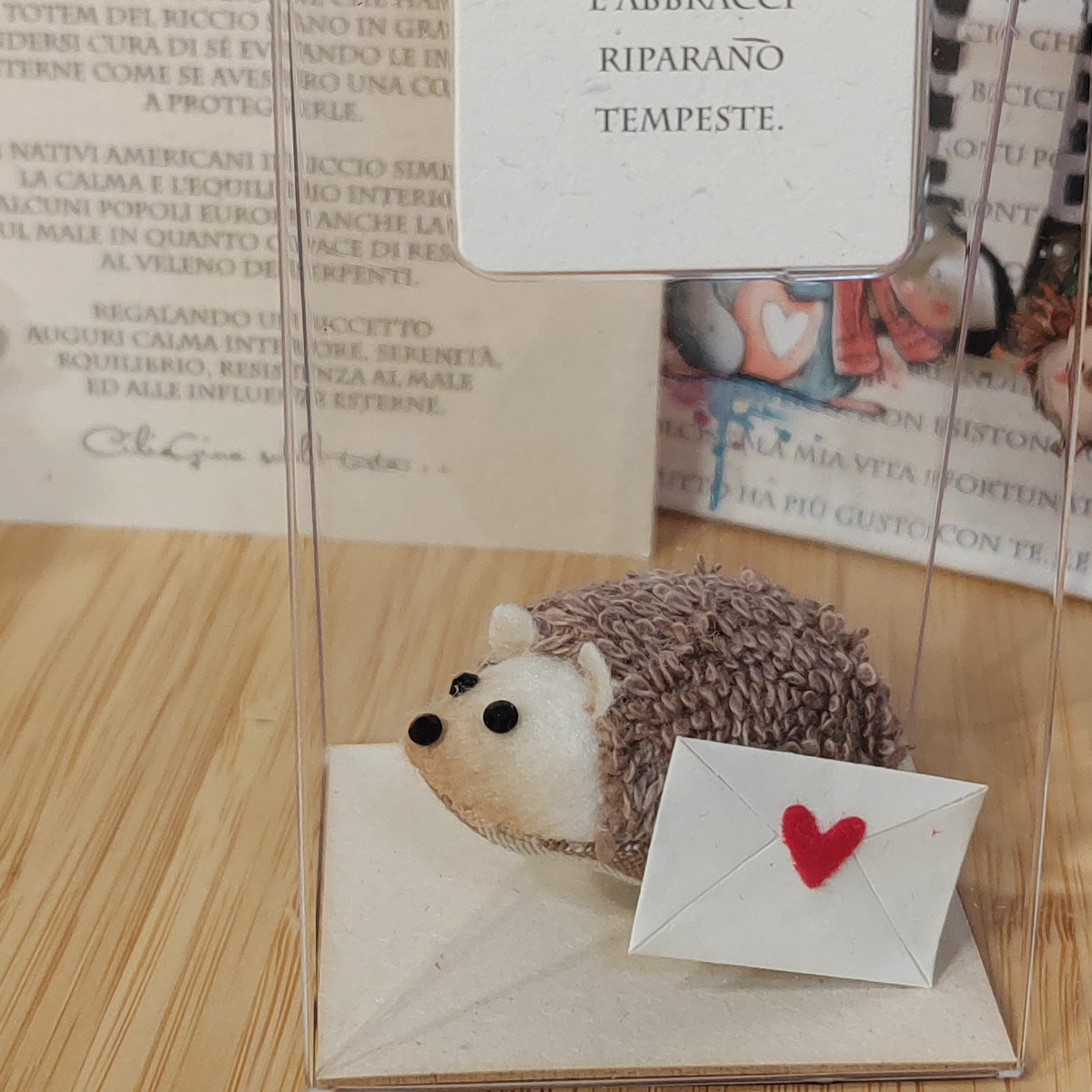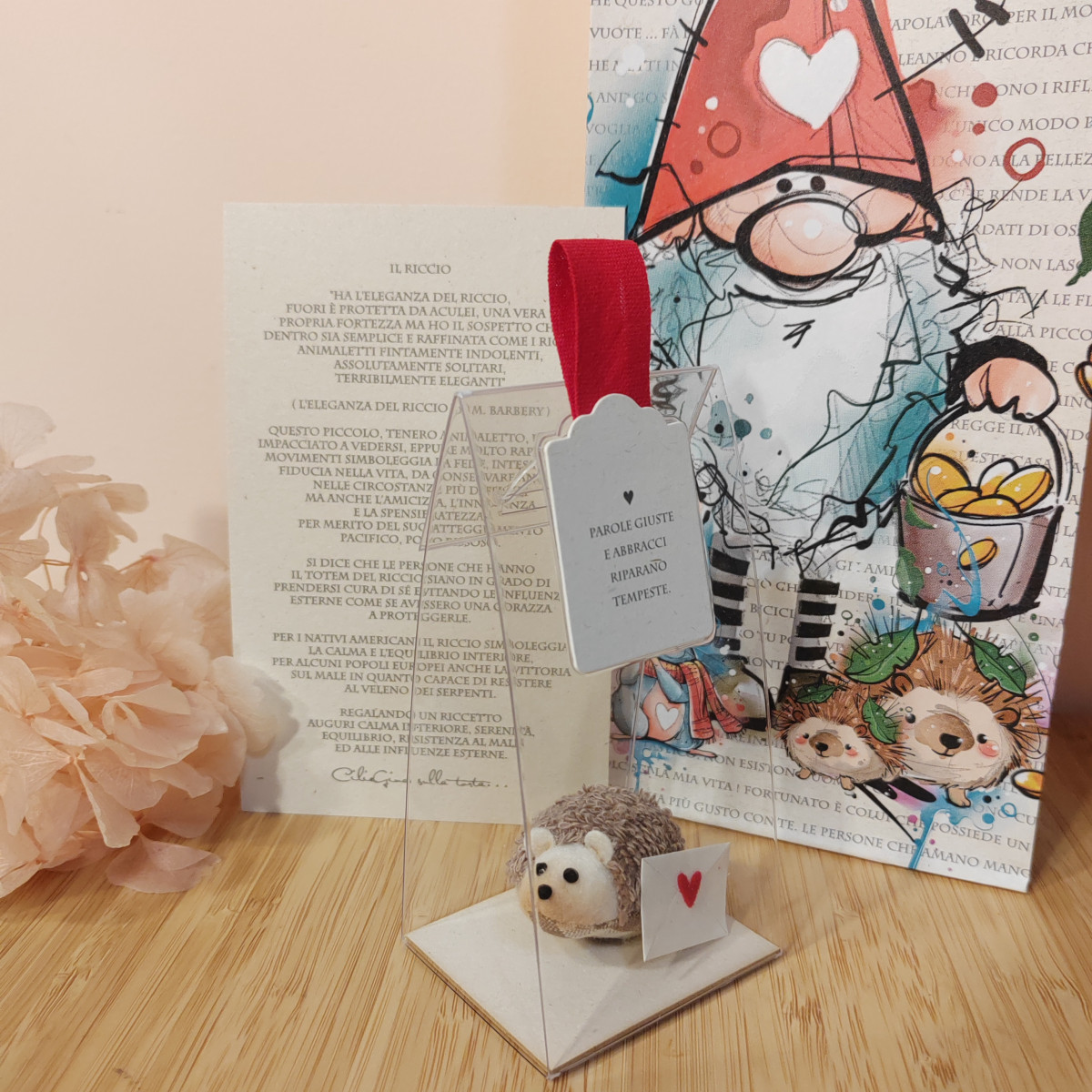 Riccetto in tessuto ed elementi decorativi, arricchito con messaggio e blister regalo.
