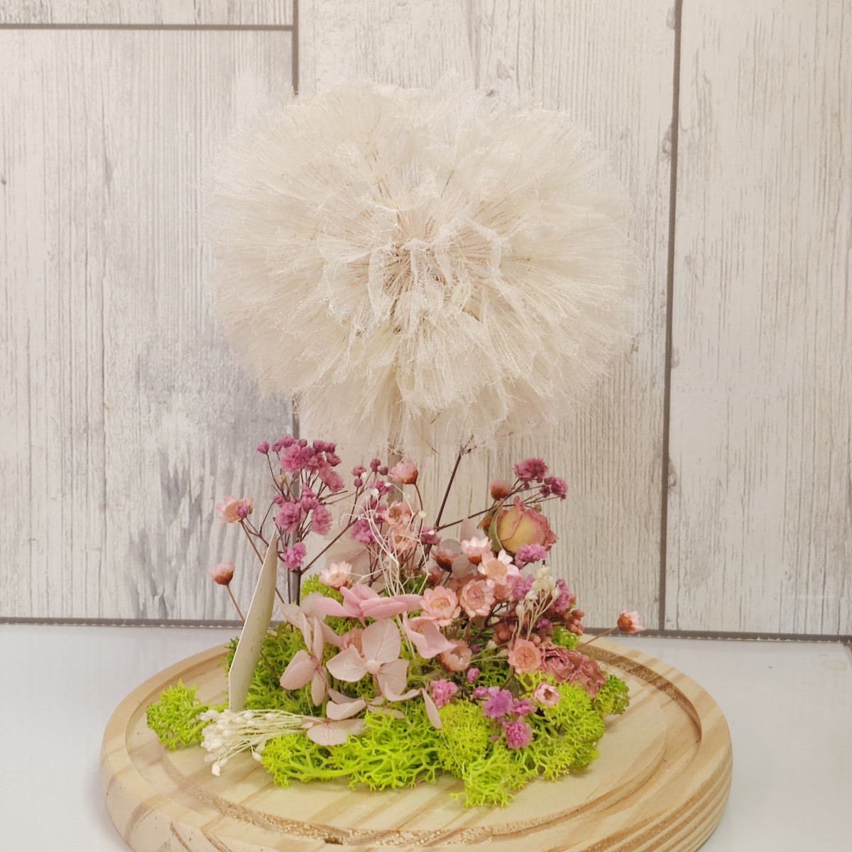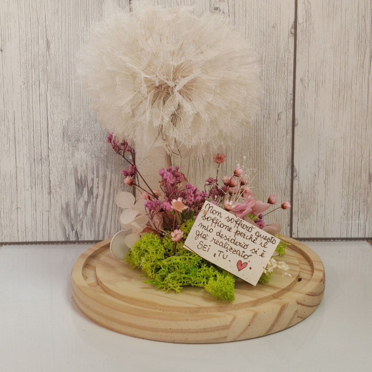Oltre al soffione troverete al suo interno altri materiali stabilizzati che renderanno la composizione unica e duratura nel tempo.