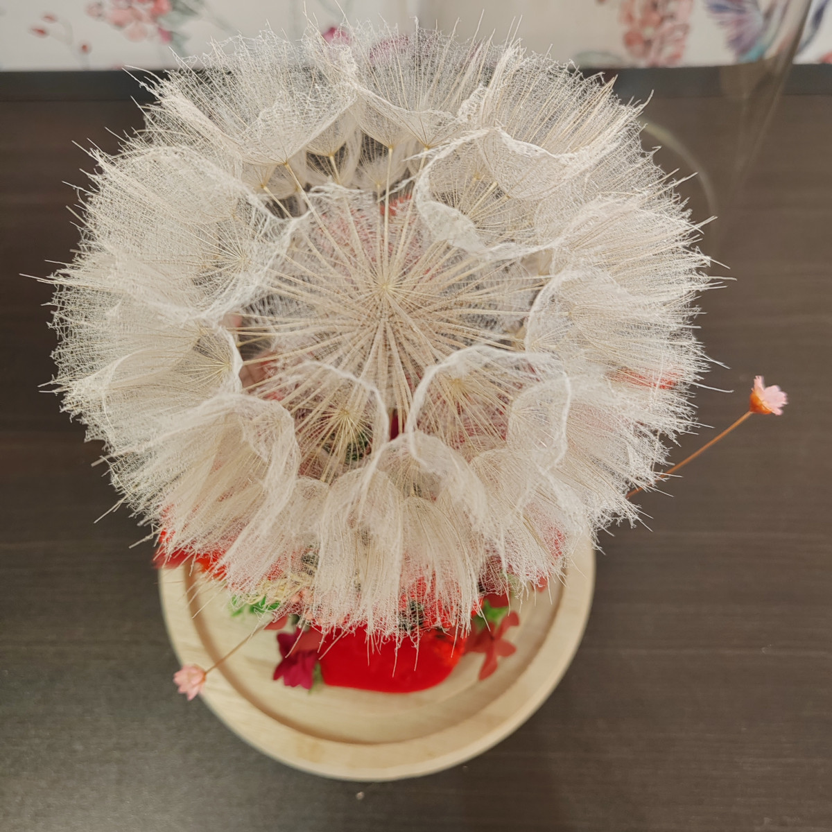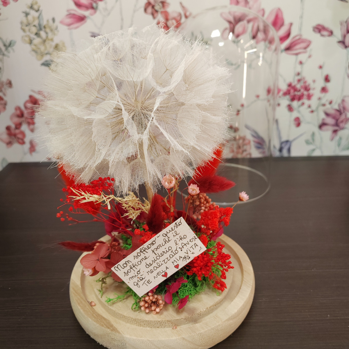 Oltre al soffione troverete al suo interno altri materiali stabilizzati che renderanno la composizione unica e duratura nel tempo.