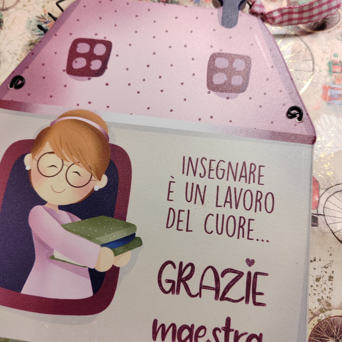 Targa casetta “Insegnare è un lavoro del cuore… Grazie maestra”