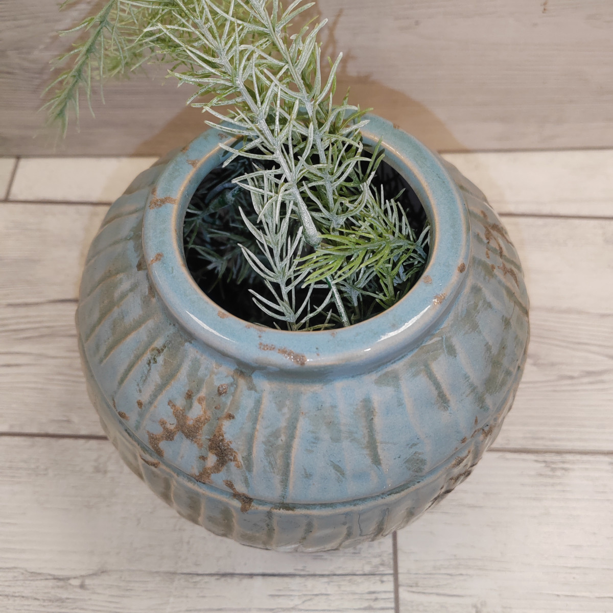 Vaso materico azzurro con scanalature