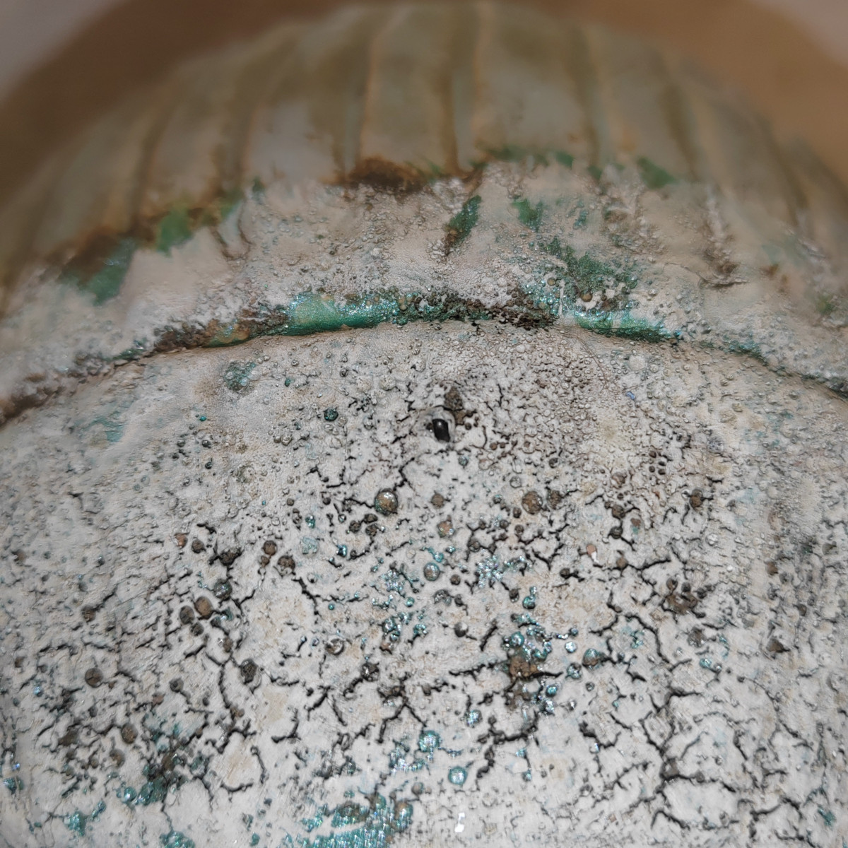 Vaso in ceramica in doppia copertura, base sabbiata ruvida in rilievo e metà superiore liscia e lucida con scanalature