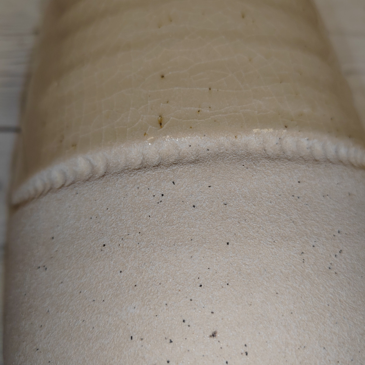 Vaso in ceramica in doppia copertura, base sabbiata ruvida e metà superiore liscia e lucida effetto cracquel